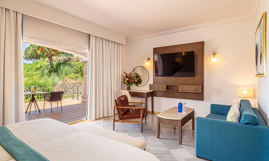 For those wishing to add a little more space to their stay we have five Family Rooms in our hotel in Mijas. Generous in size, each is tastefully decorated in an Andalusian style and are set against either the magnificent back drop of the Sierra de Ojen Mountains or La Cala’s Campo Asia.