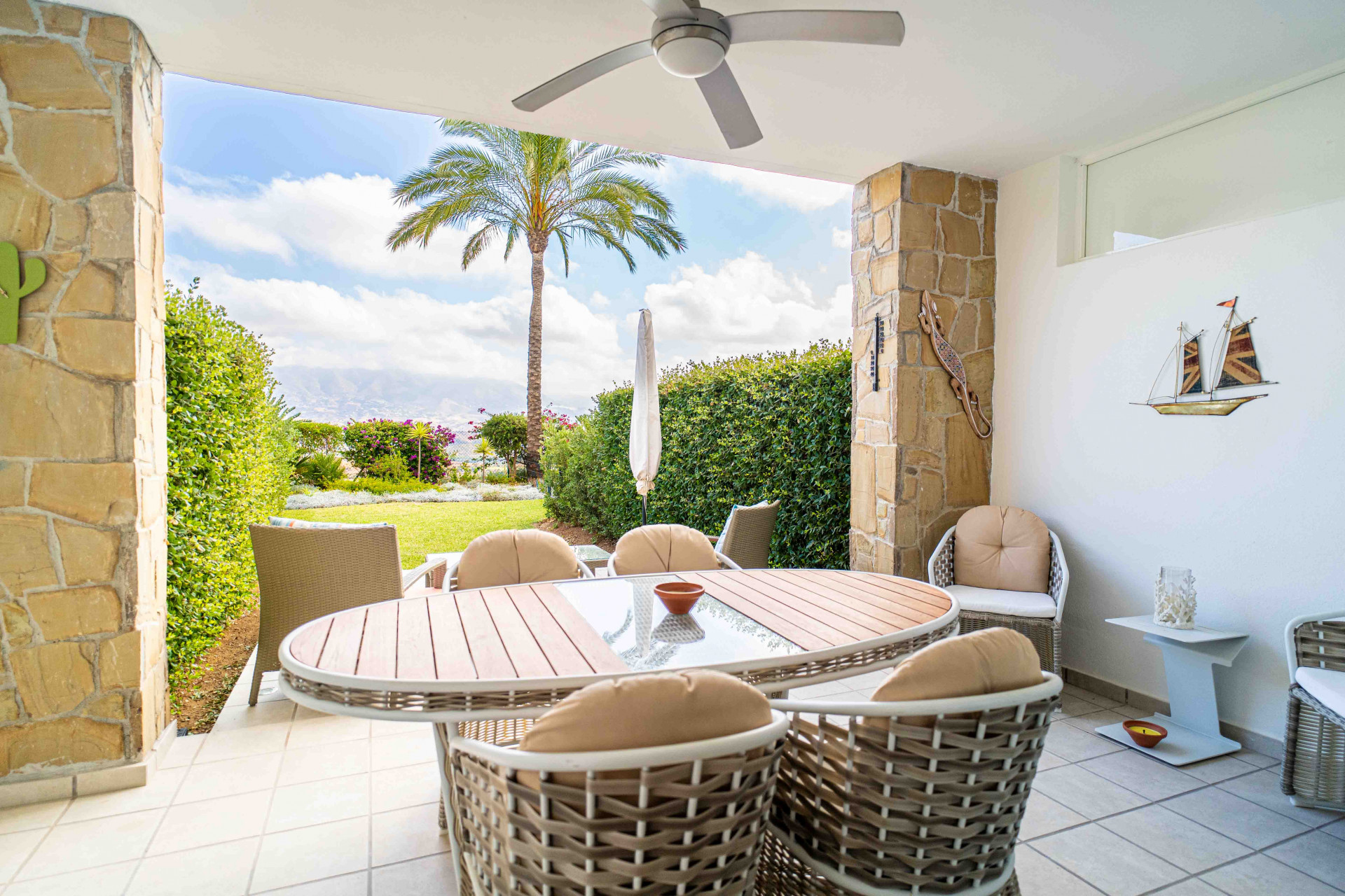 Step outside to discover a beautifully landscaped private garden—an expansive haven ideal for sun-soaked afternoons, alfresco dining, or simply unwinding in the serene surroundings of La Cala Golf Resort. Whether hosting guests or enjoying quiet solitude, this outdoor space elevates the property into a true lifestyle residence.